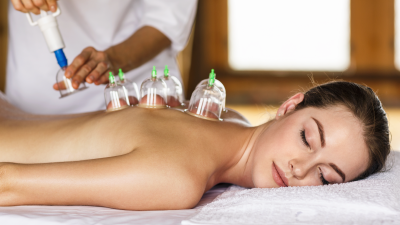 Massage Cupping is the combination of massage movements and negative pressure with the use of a suction device on the skin. A cup is positioned at the area to be treated and a vacuum is created within the cup to draw the skin and underlying tissue into the cup. The suction of the cups rapidly facilitates rigid soft tissue release, loosens areas of adhesion or restriction, loosens & lifts connective tissue, while increasing blood & lymph flow to skin & muscles in ways not possible using typical massage. Not recommended for people with heart and blood disorders. It may leave marks (not bruises) that disappear over time.